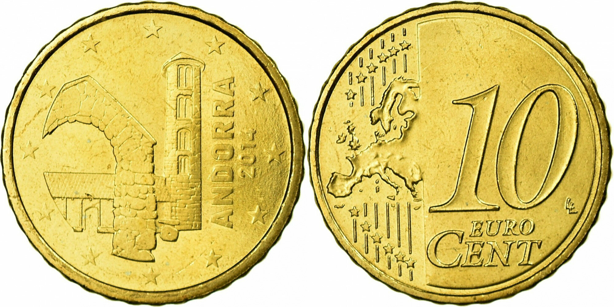Андорра 10 евроцентов, 2014-2022 UNC
