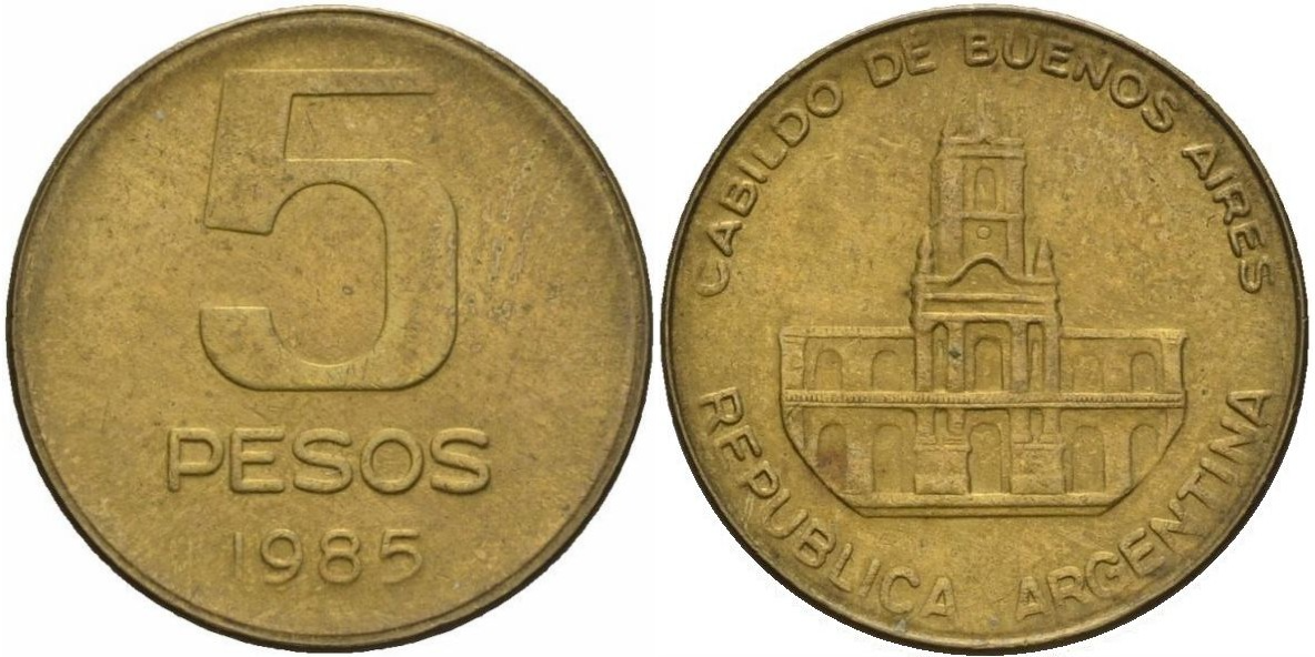 Редкая аргентинская монета 5 песо (1984-1985) с изображением ратуши Буэнос-Айреса! Прекрасное дополнение к коллекции нумизмата высокого качестваXF. Сохраните историческое наследие Аргентины у себя дома – станьте обладателем уникальной монеты сегодня!
