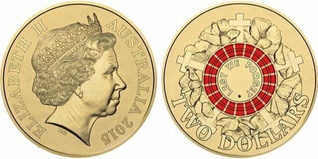 Австралия 2 доллара, 2015 100 лет высадке в Галлиполи /чтобы помнили/ UNC