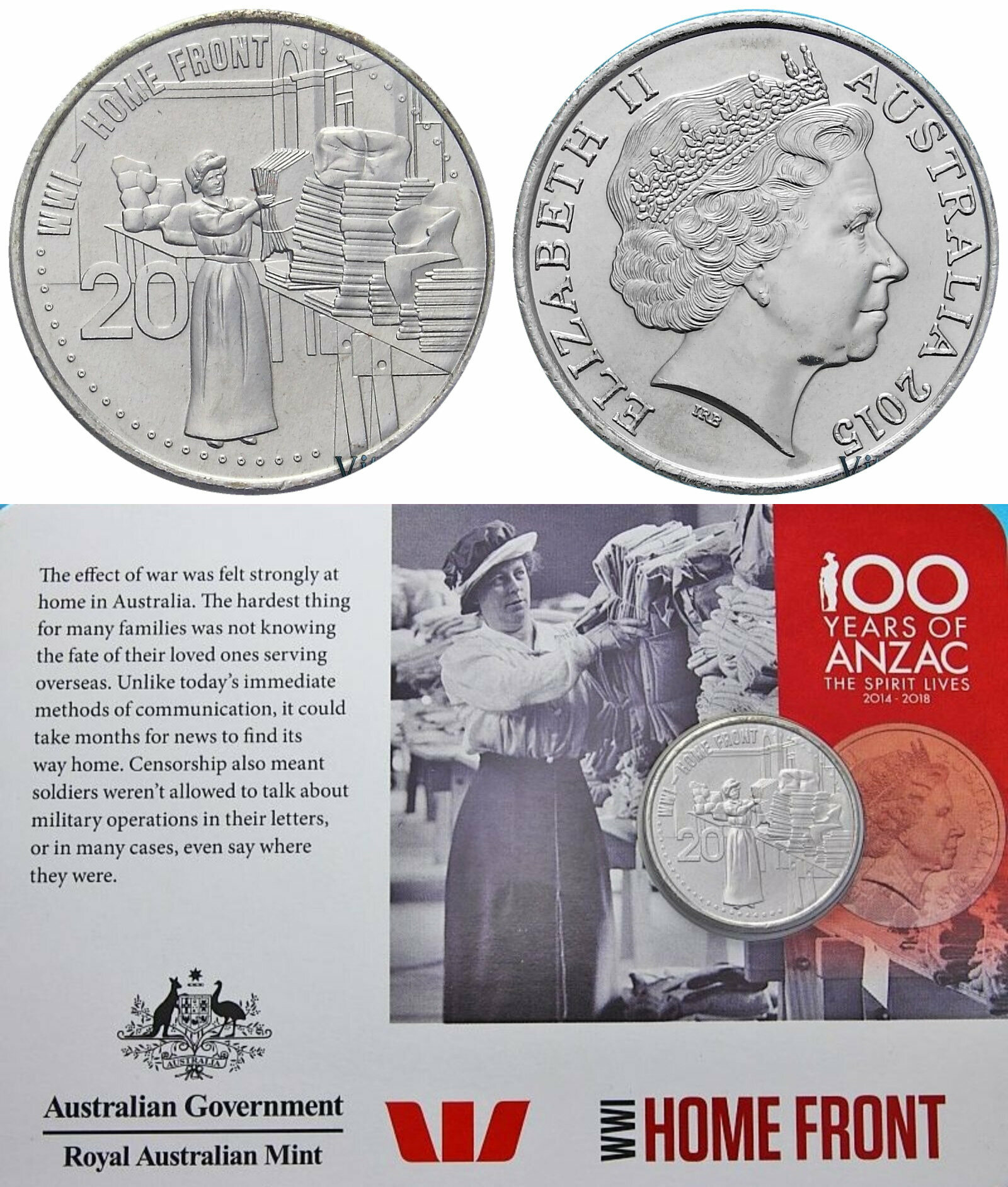 Австралия 20 центов, 2015 АНЗАК - Тыл