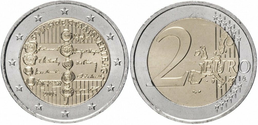 Австрия 2 евро, 2005 50 лет подписанию договора о нейтралитете Австрии UNC