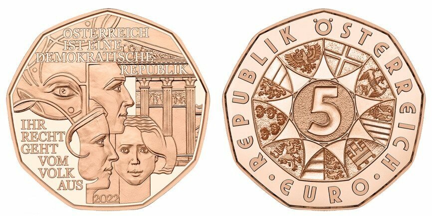 Австрия 5 евро, 2022 Демократия