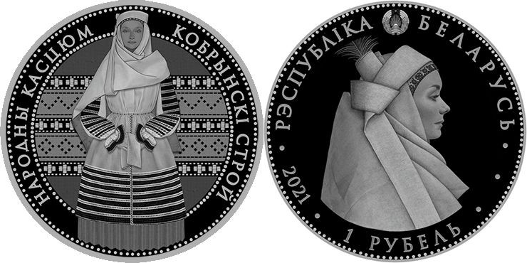 Беларусь 1 рубль, 2021 Белорусский национальный костюм - Кобринский строй