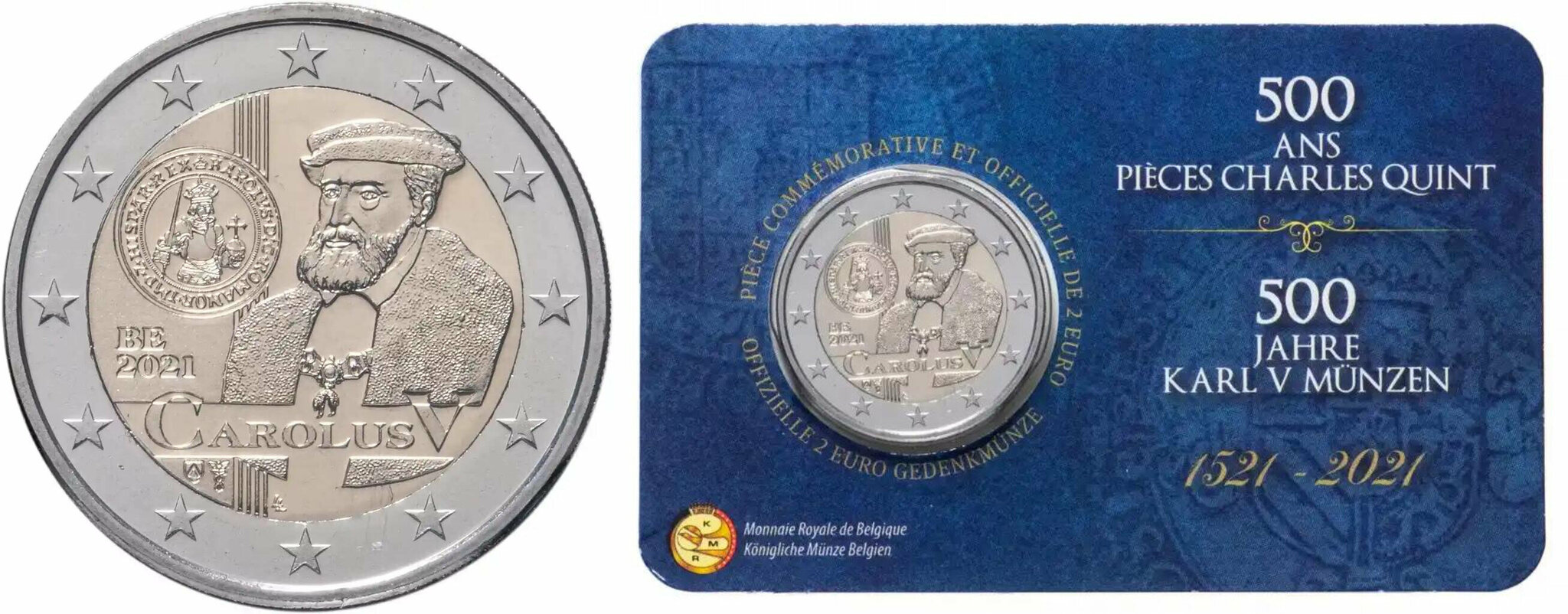 Бельгия 2 евро, 2021 500 лет выпуску гульдена Карла V BUNC