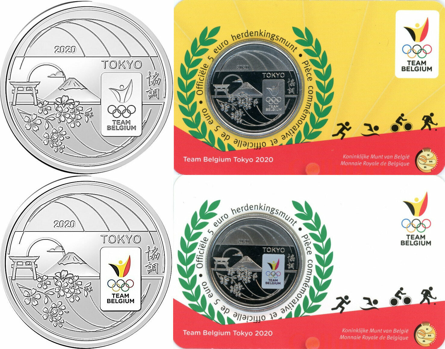 Бельгия 5 евро, 2020 XXXII летние Олимпийские игры, Токио 2020 2 монеты