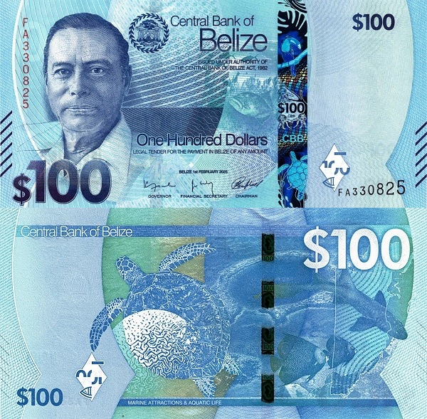 Белиз 100 доллар 2025 Морская черепаха с ястребиным клювом UNC