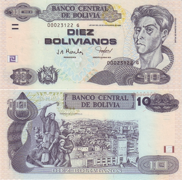 Боливия 10 боливиано 1986 Кочабамба UNC