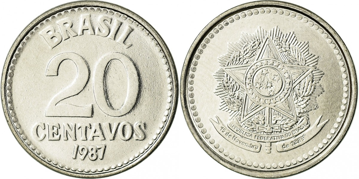 Бразилия 20 сентаво, 1986 - 1988 Герб XF