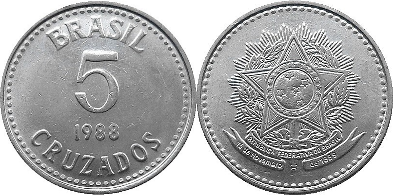 Бразилия 5 крузадо, 1986 - 1988 Герб XF