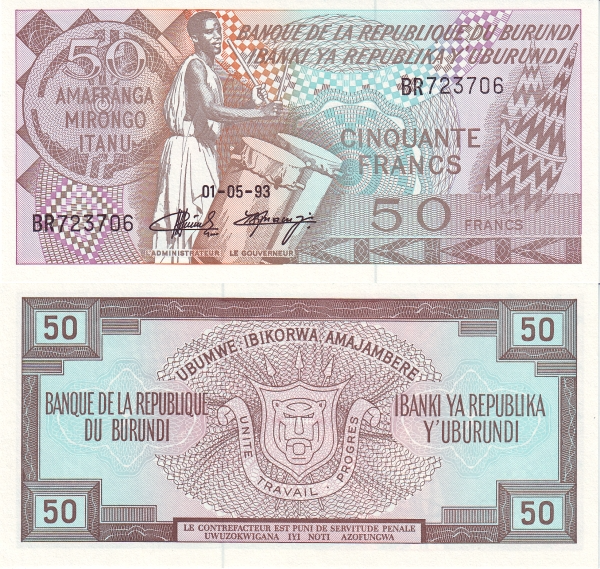 Бурунди 50 франков 1977-1993 Барабанщик UNC