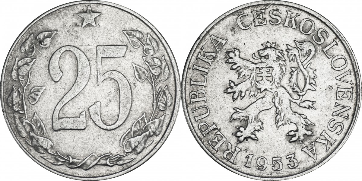 Чехословакия 25 геллеров, 1953 - 1954 Лев XF