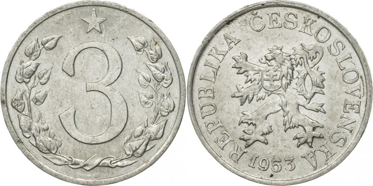 Чехословакия 3 геллера, 1953 - 1954 Герб XF