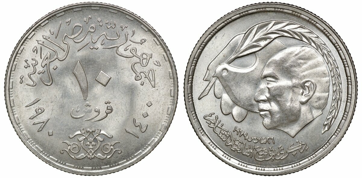 Египет 10 пиастров, 1980 Египетско-израильский мирный договор