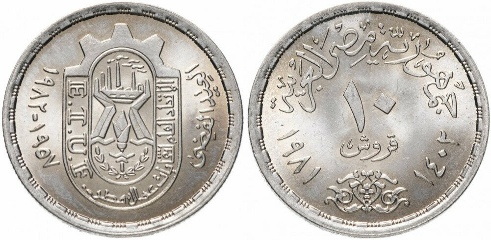 Египет 10 пиастров, 1981 25 лет профсоюзам