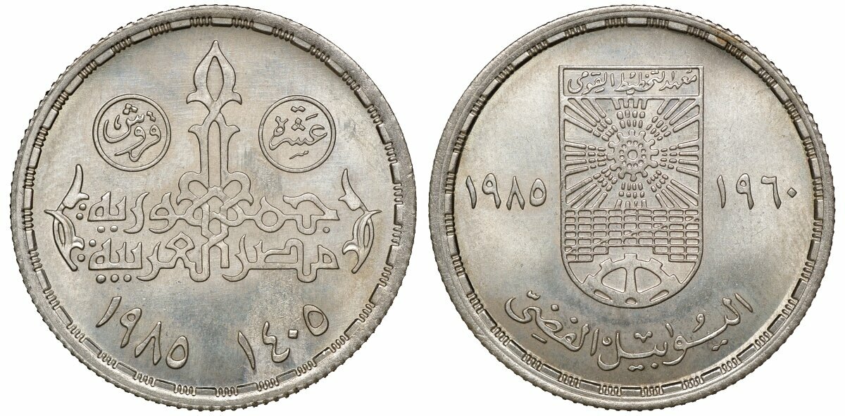 Египет 10 пиастров, 1985 25 лет Национальному институту планирования UNC