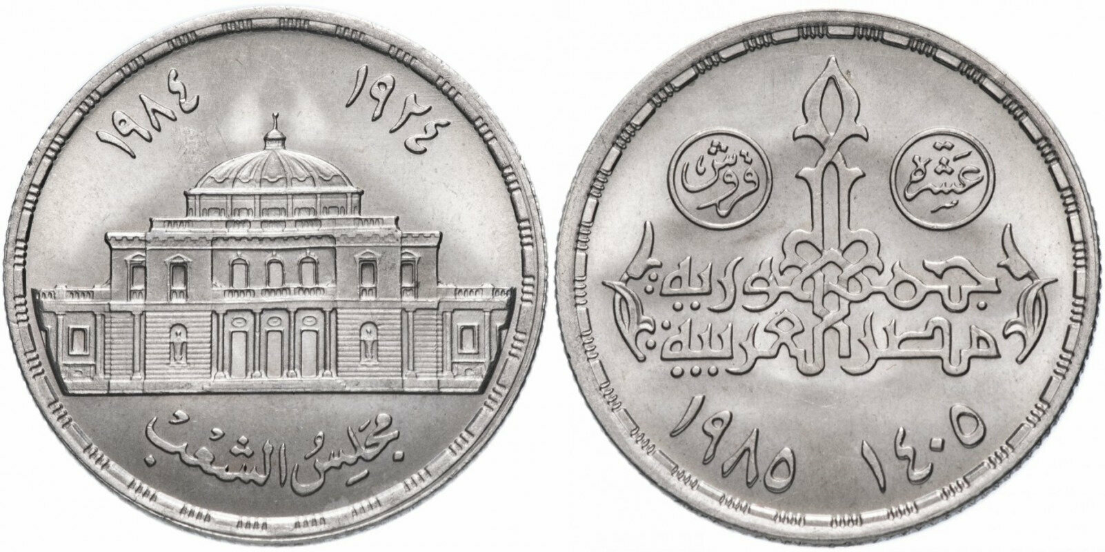 Египет 10 пиастров, 1985 60 лет парламенту Египта UNC