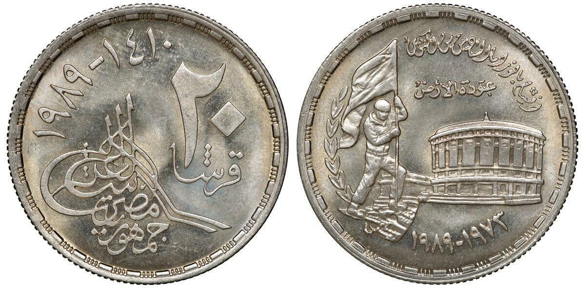 Египет 20 пиастров, 1989 16 лет октябрьской войны UNC