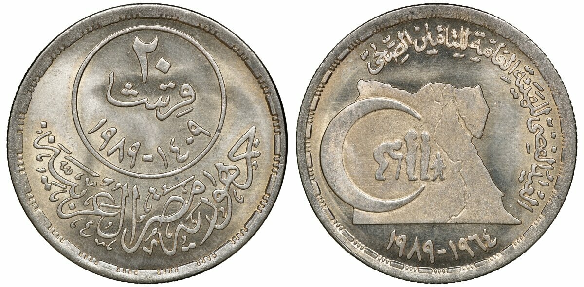 Египет 20 пиастров, 1989 Государственное медицинское страхование aUNC