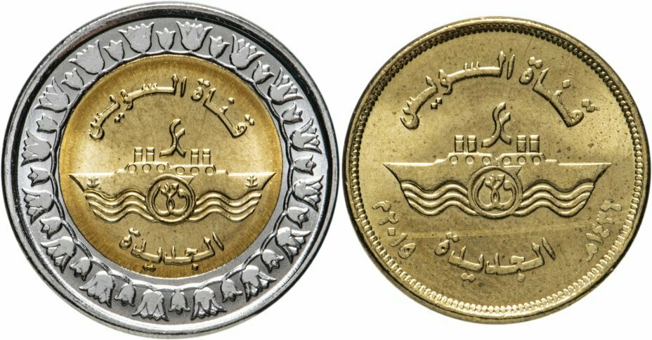 Египет 2015 Новая ветка Суэцкого канала - 2 монеты UNC