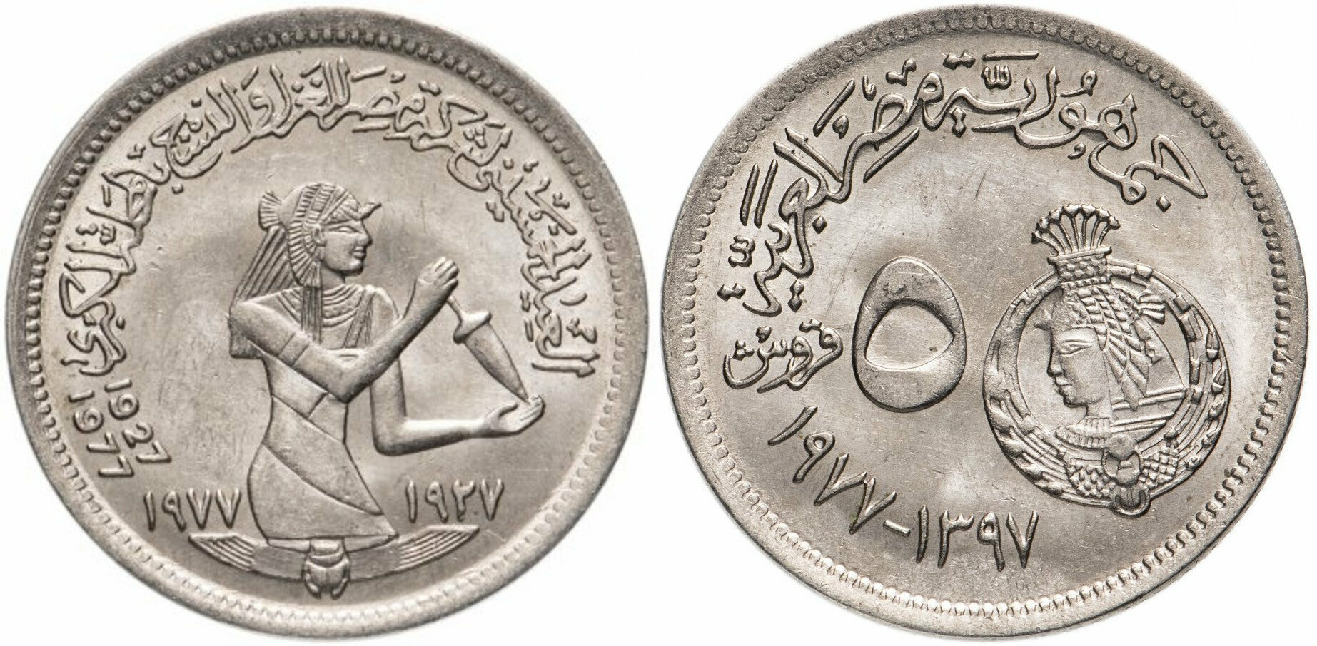 Египет 5 пиастров, 1977 50 лет текстильной промышленности