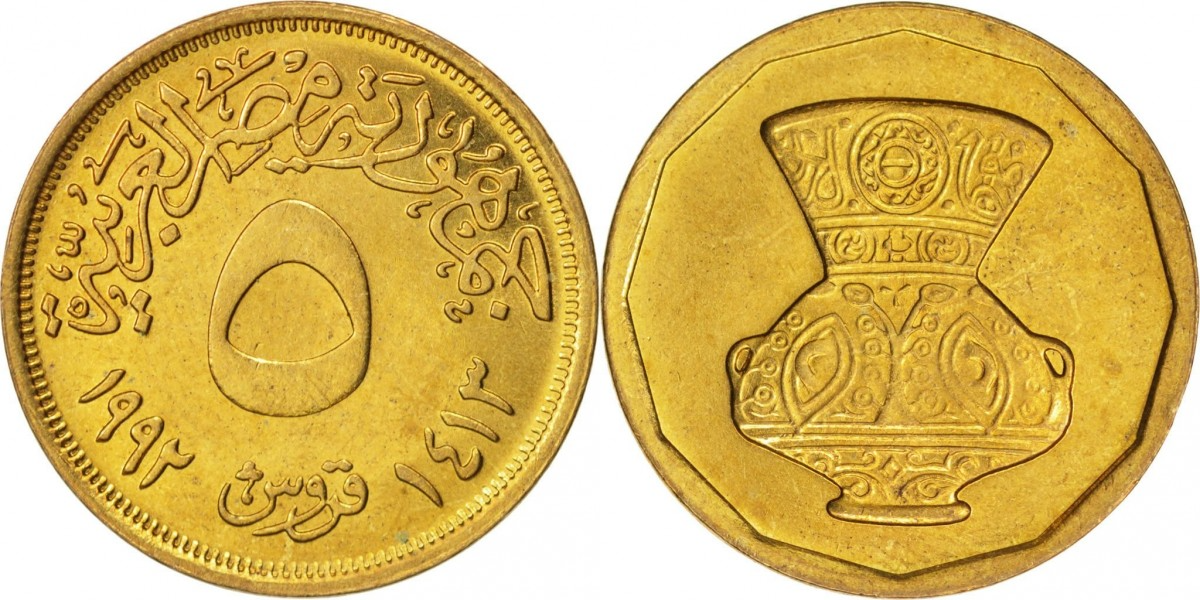 Египет 5 пиастров, 1991 - 1992 Масляная лампа XF
