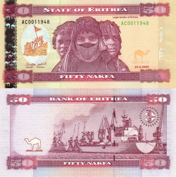Эритрея 50 накфа 2004 Грузовые суда в порту Массауа UNC