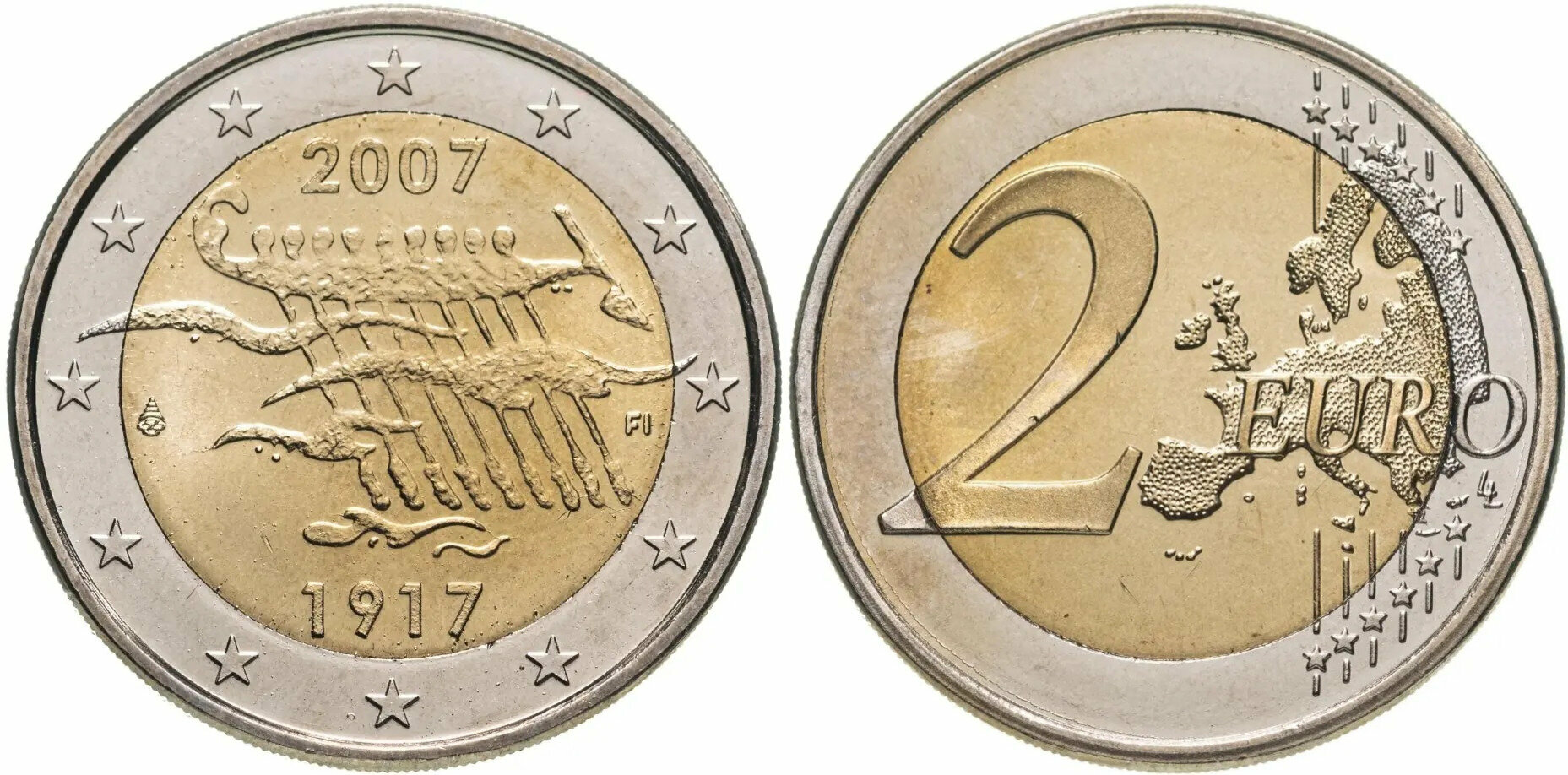 Финляндия 2 евро, 2007 90 лет независимости Финляндии