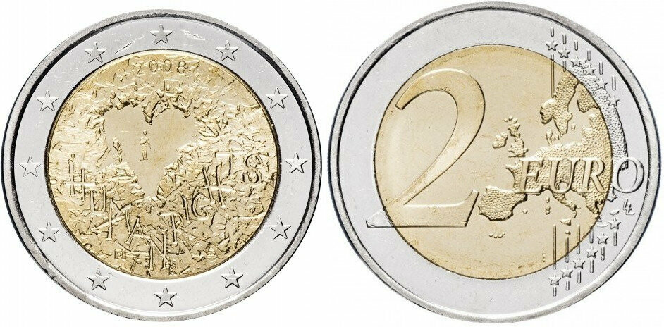 Финляндия 2 евро, 2008 60 лет Всеобщей Декларации Прав Человека