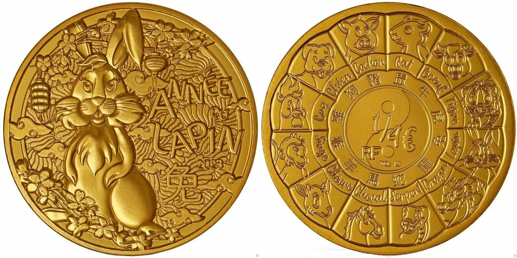 Франция 1/4 евро, 2023 Китайский гороскоп - кролик
