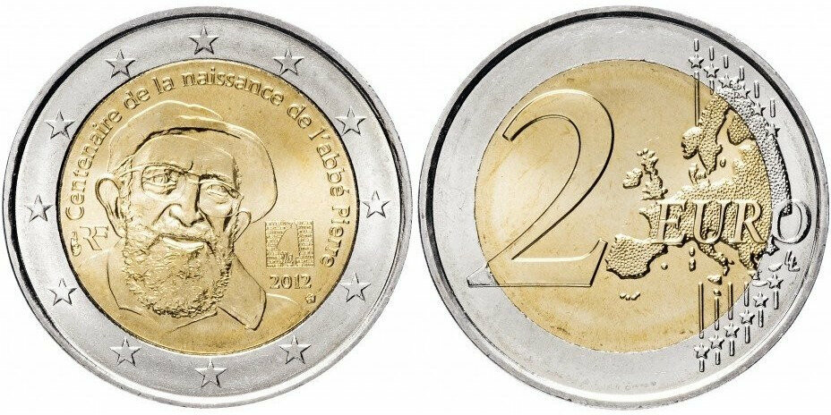 Франция 2 евро, 2012 100 лет со дня рождения аббата Пьера UNC
