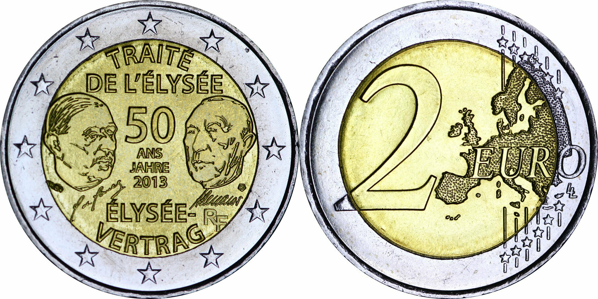 Франция 2 евро, 2013 50 лет подписания Елисейского договора XF