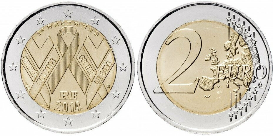 Франция 2 евро, 2014 Всемирный день борьбы со СПИДом UNC