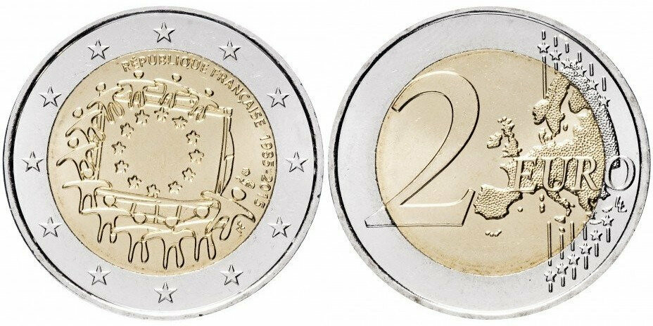 Франция 2 евро, 2015 30 лет флагу Европейского союза XF
