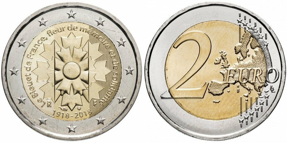 Франция 2 евро, 2018 100 лет окончанию Первой Мировой войны UNC