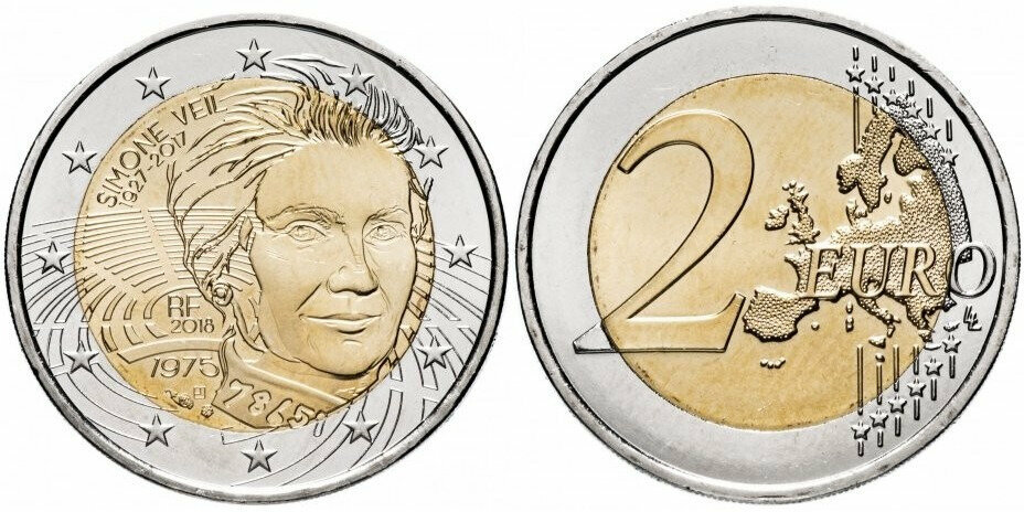 Франция 2 евро, 2018 Симона Вейль aUNC