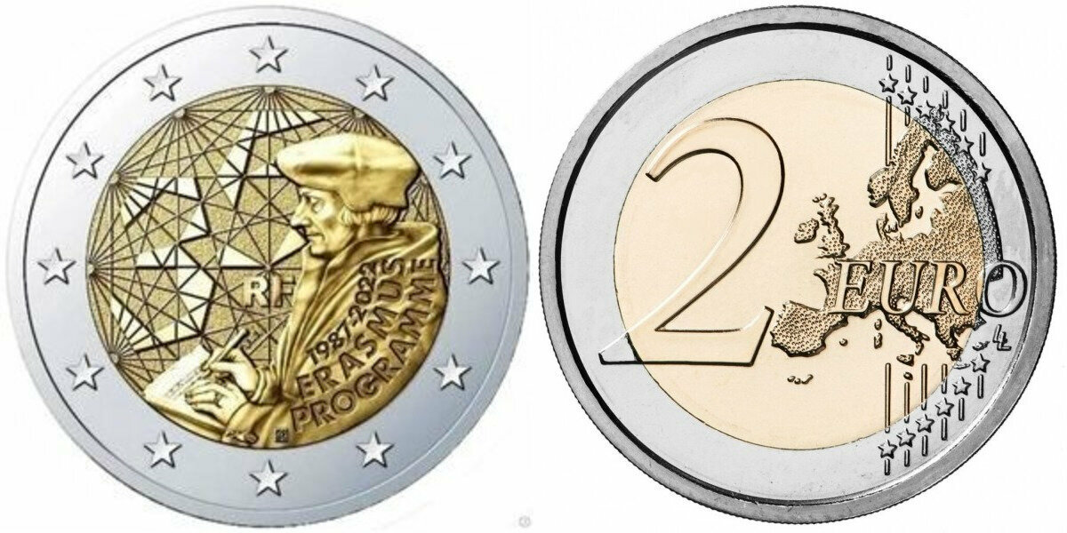 Франция 2 евро, 2022 35 лет программе Эразмус UNC