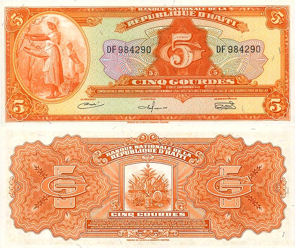 Гаити 5 гурд 1919 Женщина, собирающая урожай кофе UNC