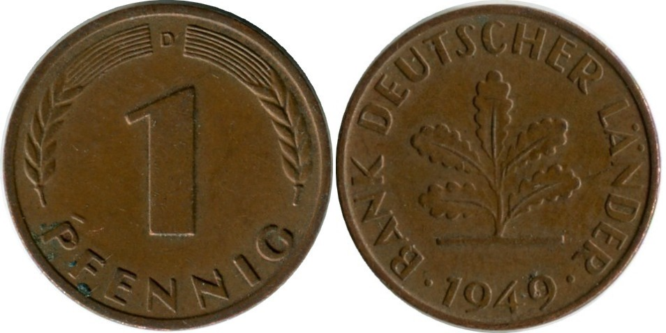 Редкая немецкая монета «Германия 1 пфеннингг (1948-1949)» – отличный выбор для вашего нумизматического портфеля! Отличное состояние сохранности (XF), привлекательный дизайн дубовых листьев придадут коллекции особый шарм и ценность. Изящная деталь прошлого станет прекрасным вложением средств и украшением вашей коллекции. Приобретайте редкие монеты у нас первыми и выгодно!