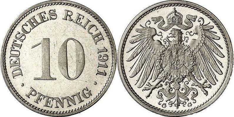 Германия 10 пфеннигов, 1890 - 1916 Герб XF