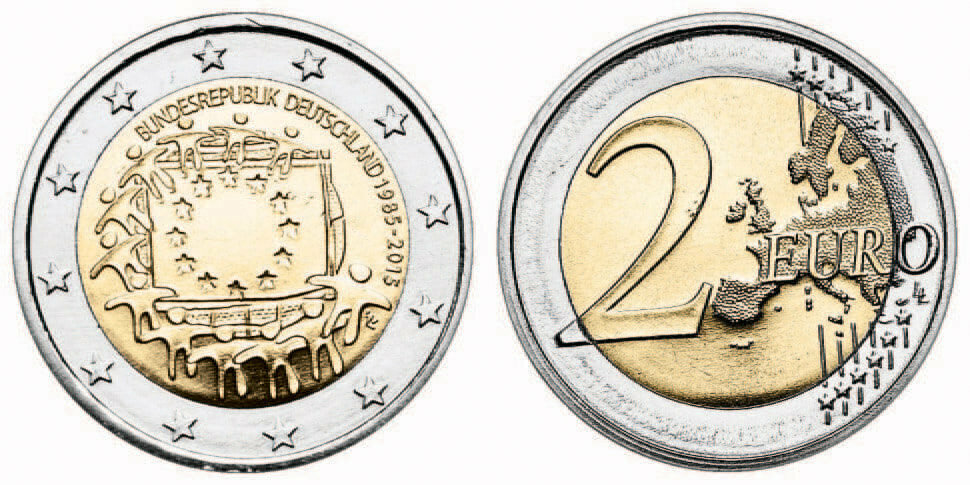 Германия 2 евро, 2015 30 лет флагу Европейского союза XF