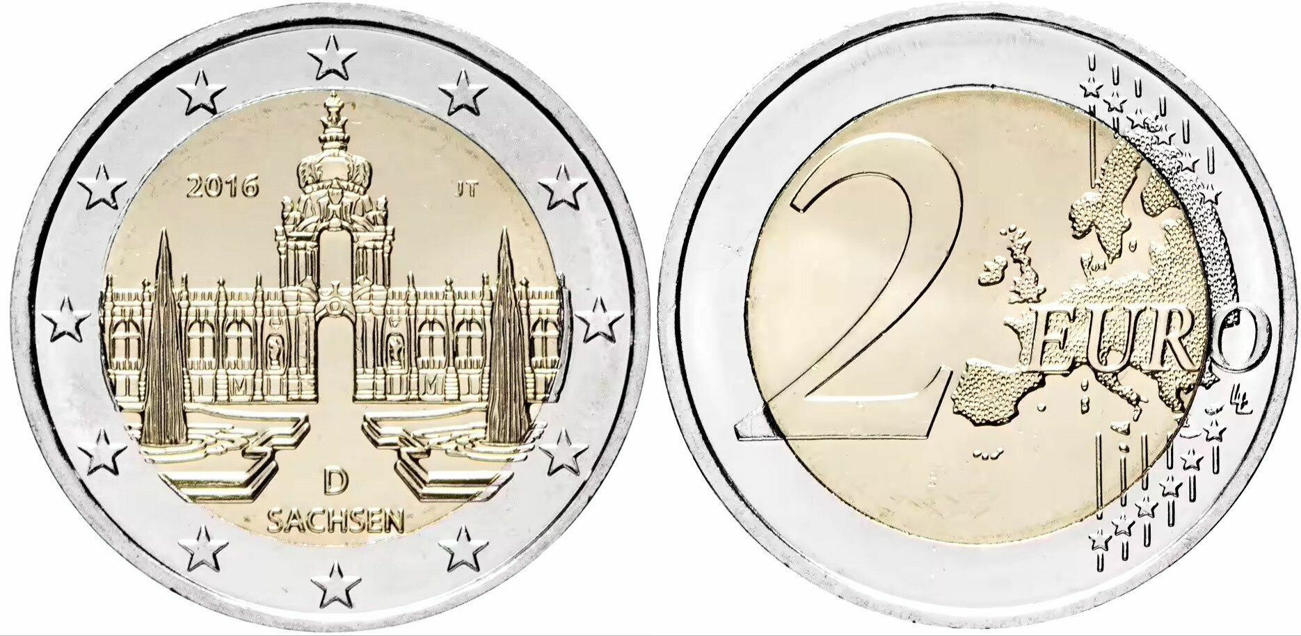 Германия 2 евро, 2016 Федеральные земли Германии - Саксония aUNC