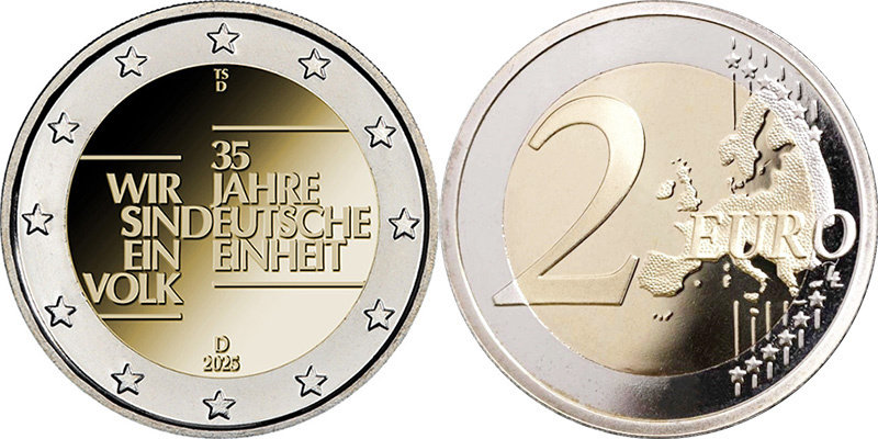 Германия 2 евро, 2025 35 лет объединению Германии UNC