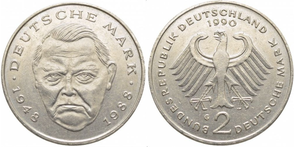 Редкая монета Германии номиналом 2 марки периода 1988-2001 гг., посвящённая выдающемуся экономическому деятелю Людвигу Эрхарду. СостояниеXF (extremely fine) гарантирует отличное качество сохранности – идеальный выбор для пополнения коллекции нумизмата! Представляет историческую ценность, подходит как ценным вложением, так и оригинальным подарком для любителя редкостей.