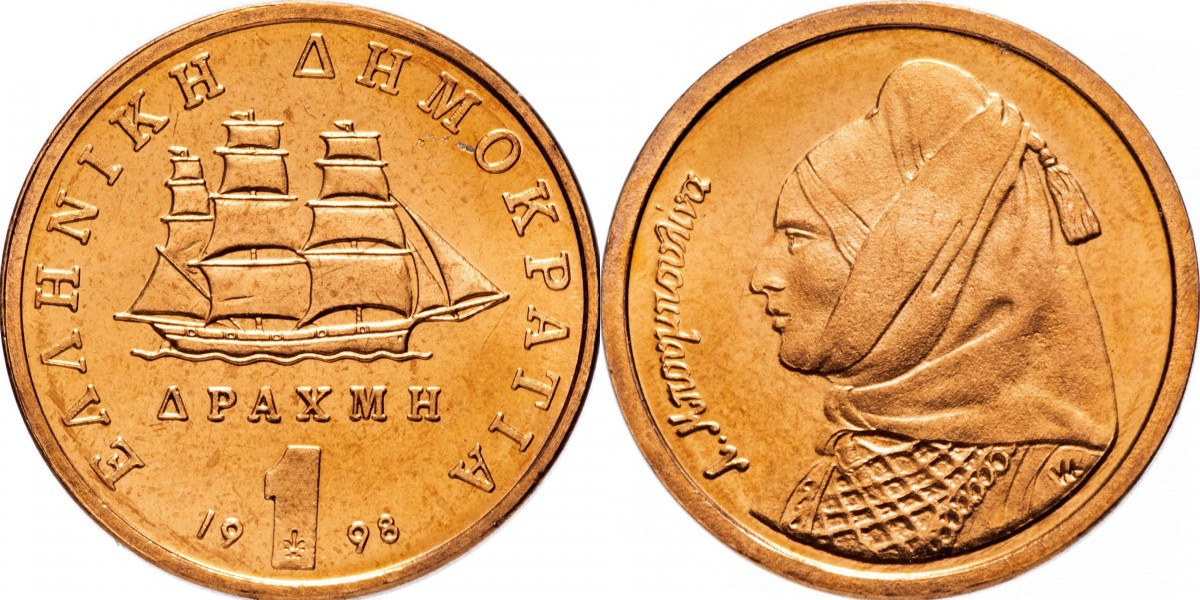 Греция 1 драхма, 1988 - 2000 Ласкарина Бубулина XF