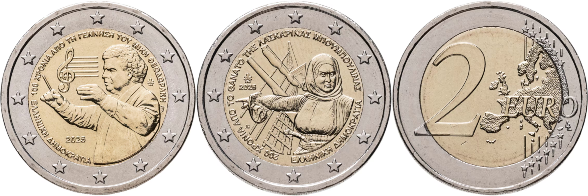 Греция 2 евро, 2025 Теодоракис и Бубулина - 2 монеты