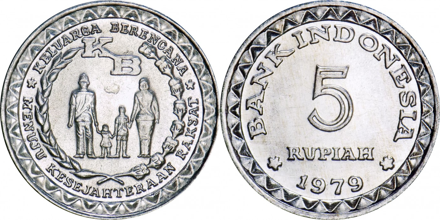 Индонезия 5 рупий, 1979 - 1996 ФАО - Планирование семьи XF