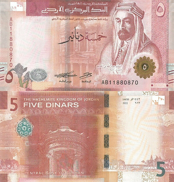 Иордания 5 динар 2022 P-W40 UNC