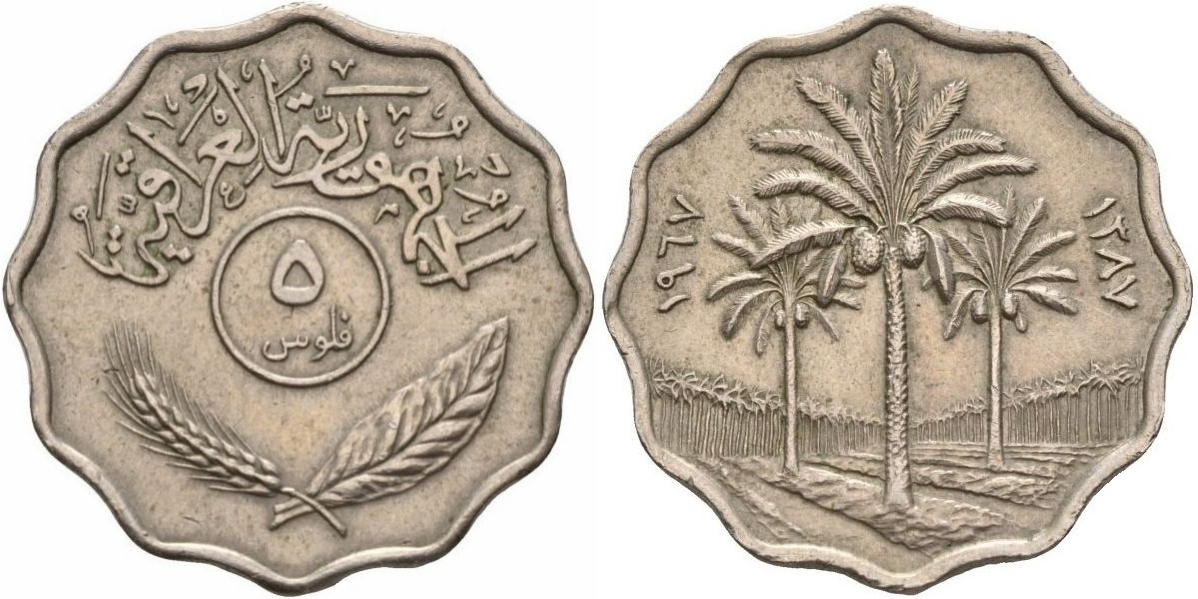 Редкая монета Ирака номиналом 5 филсов (1967-1971 гг.) – идеальный выбор для пополнения коллекции! Разновидность «Пальмы» в отличном состоянииXF обеспечит вашему собранию привлекательность и инвестиционную перспективу. Нехитрое начало увлекательного путешествия по миру нумизматики прямо сейчас – легко купить у нас по выгодной цене!