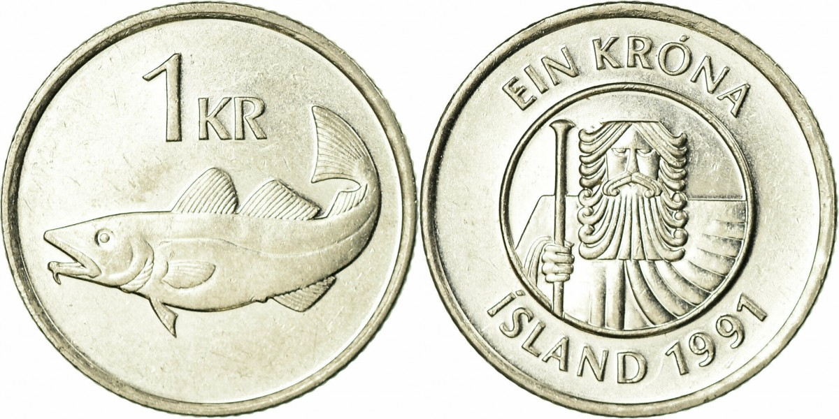 Исландия 1 крона, 1989 - 2011 Пасейдон XF