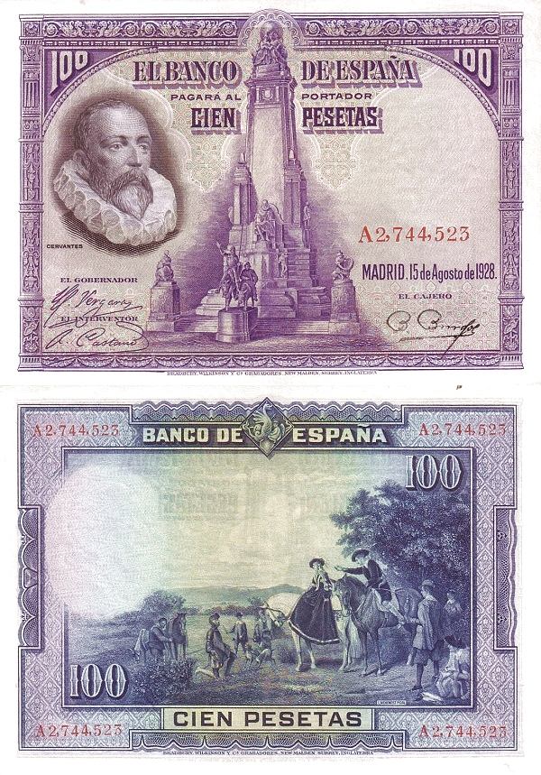 Редкая коллекционная купюра Испании номиналом 100 песет 1928 года с изображением Дона Кихота. Высокое состояние сохранности (XF) делает её идеальным дополнением к вашей коллекции антикварных банкнот. Выгодные стороны покупки: - Уникальность экземпляра; - Высокая инвестиционная привлекательность; - Прекрасное вложение средств и украшение коллекции!